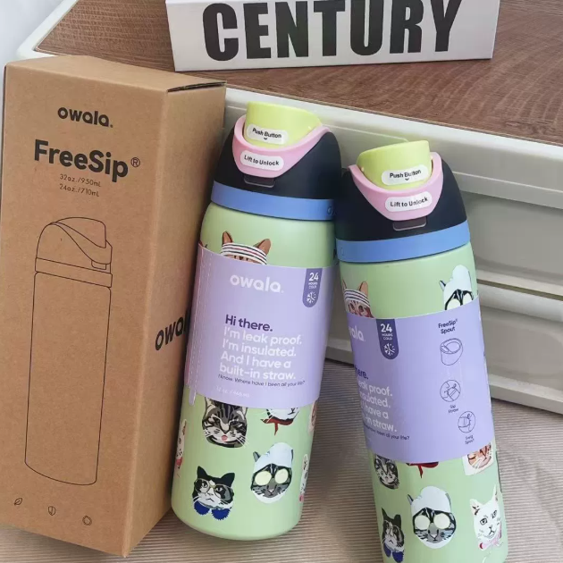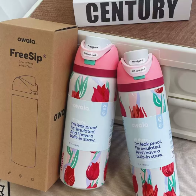 Coolvaya Insulated Stainless Steel Water Bottle with Straw-32oz