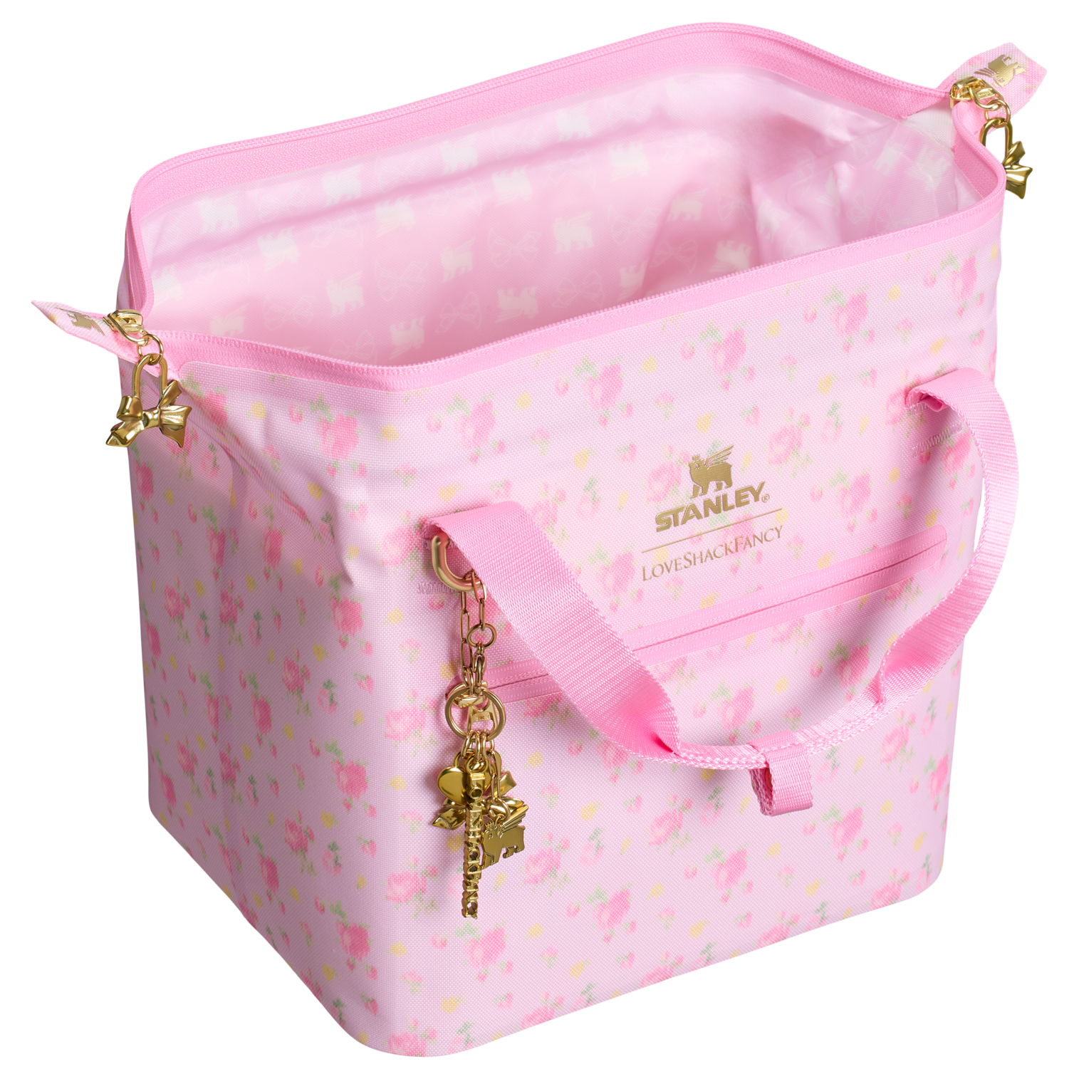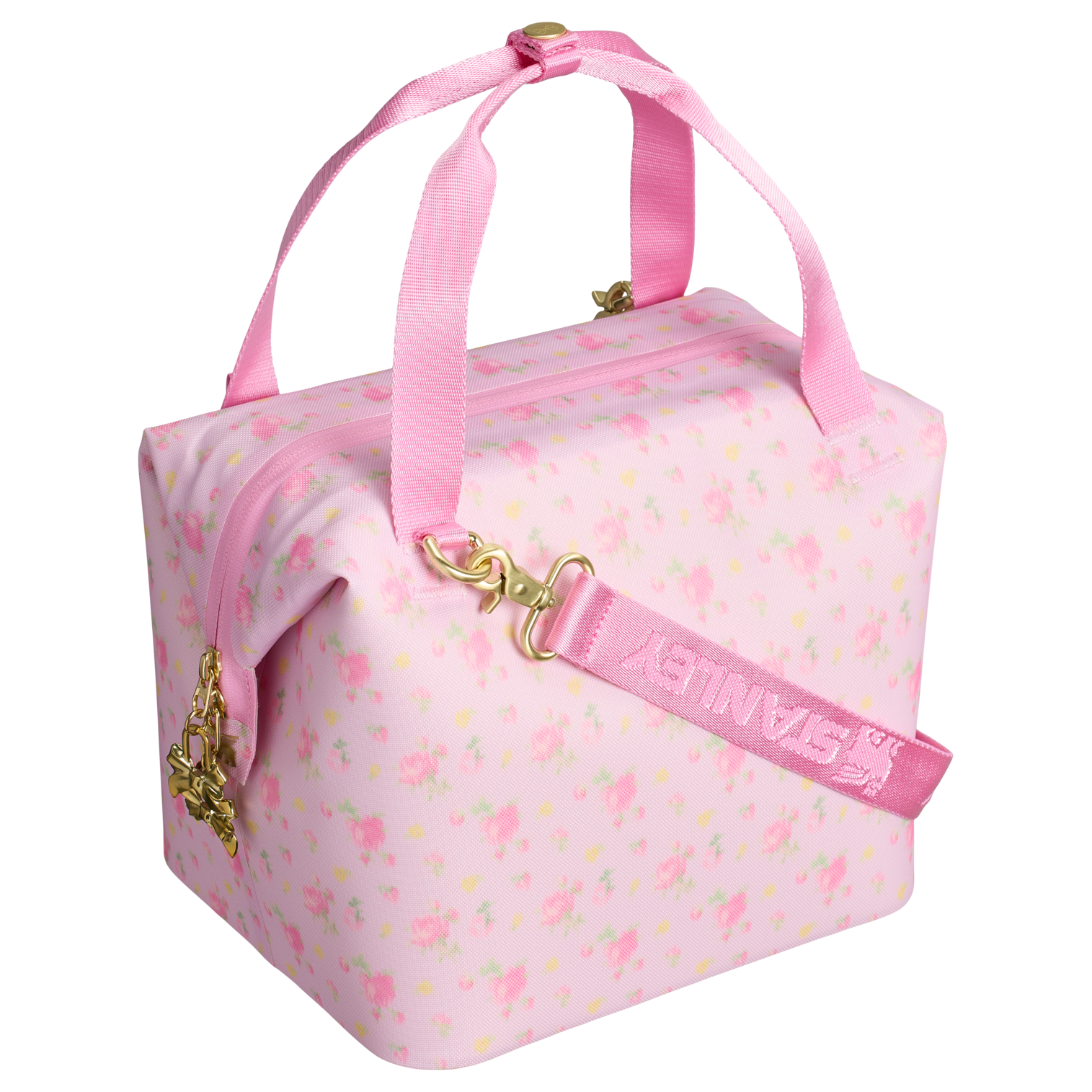 Adorned with a romantic floral print and gold accents, this 7 L mini cooler fits up to 10 cans — perfect for picnics, beach days, or everyday adventures.